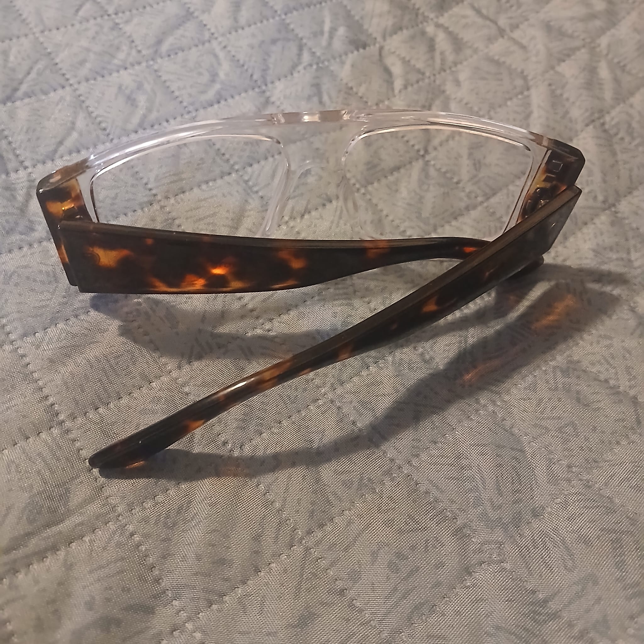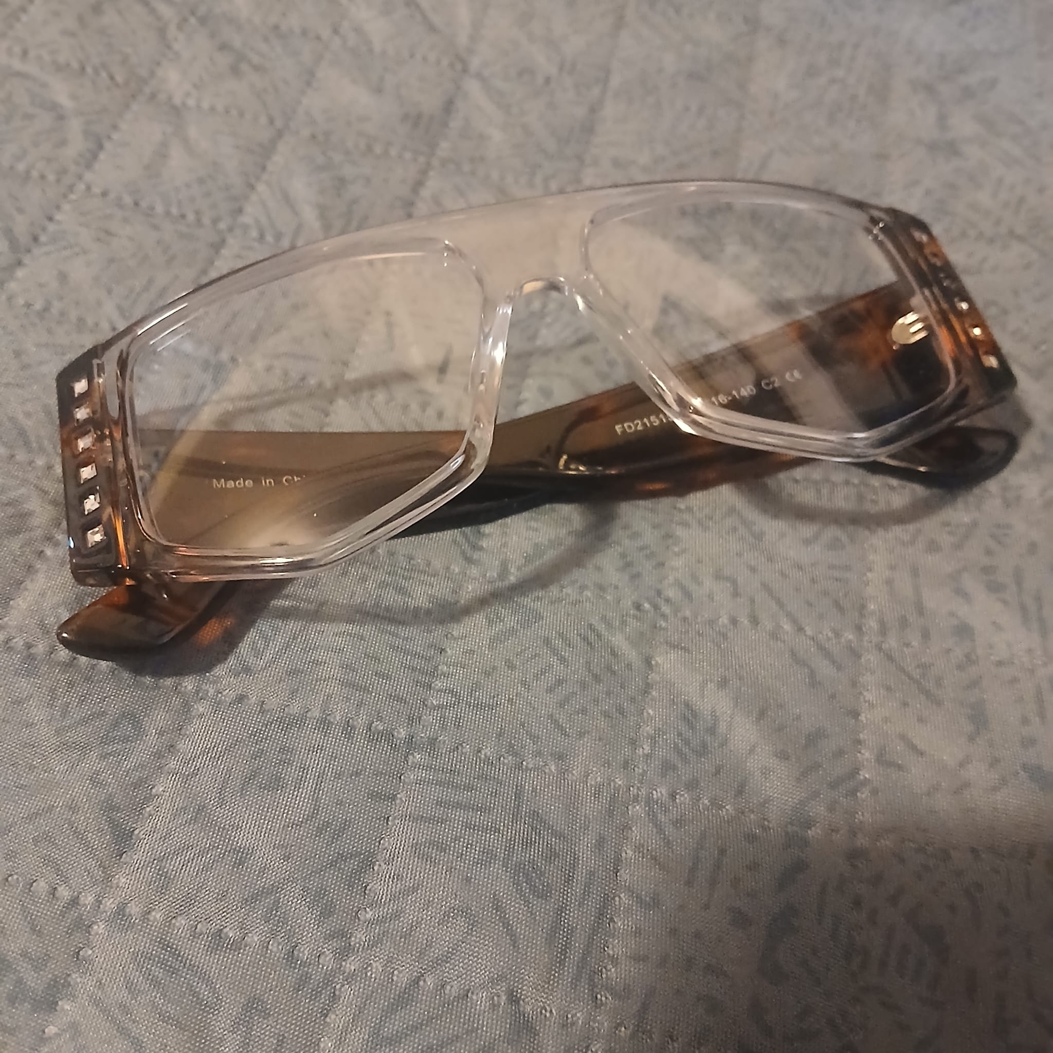Clip-on shades, felt case, and cleaning cloth included with frames.